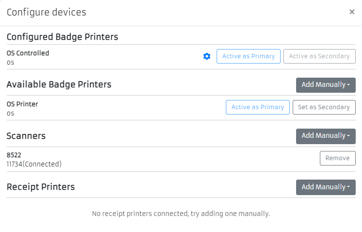 Configure the Scanner, by clicking "Add Manually" and then "Scanner with Web Serial", and follow the browser's prompts to add the device.